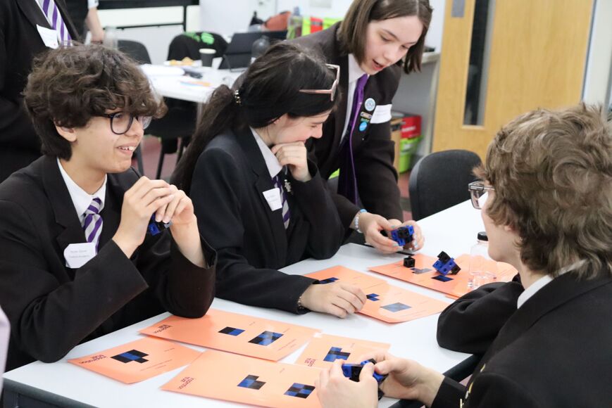 The finale for the day was the Practical Challenge. This year teams had to work together to create a strategy to produce recreations of block diagrams given only three views of the model. Pupils had to be careful to align the views correctly to create the exact model in question. The first half of this challenge involved every team member creating and producing their block models, and for the final part the teams were tasked to choose their best members to skilfully reproduce a challenging final model in timed conditions. A particular mention goes to King Edward VII Academy where pupils had a natural affinity for the spatial skills in this task and managed to perform extremely well under pressure, solving all puzzles very quickly.