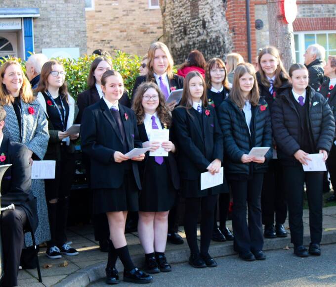 At Cromer Academy there was a service held in Cromer church for KS3 pupils and two of Year 7 pupils laid a wreath on behalf of Cromer Academy as part of the Cromer town Remembrance Service held at the war memorial.